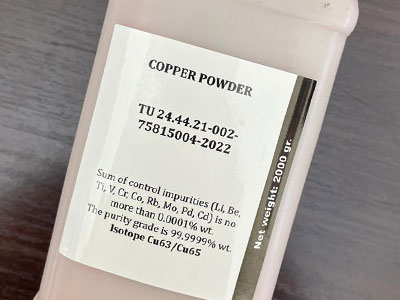 Ultrafine copper powder PMU with purity 99.999% - 99.9999%